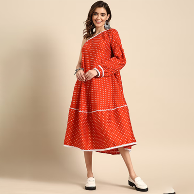 Polka Dots One Shoulder Dress
