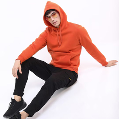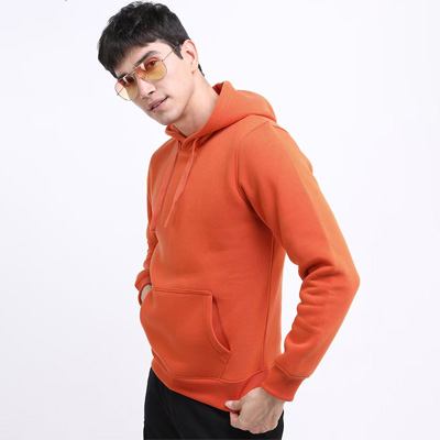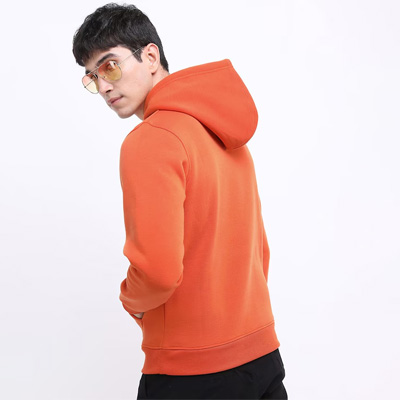 "Orange solid sweatshirt has a hooded, 2 kangaroo pocket pockets, long sleeves, straight hem Size & Fit The model (height 6') is wearing a size M Material & Care Polyester Machine wash"