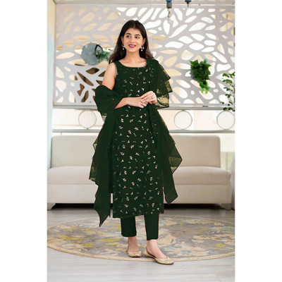 Brown & Gold-Toned Embellished Semi-Stitched Dress Material