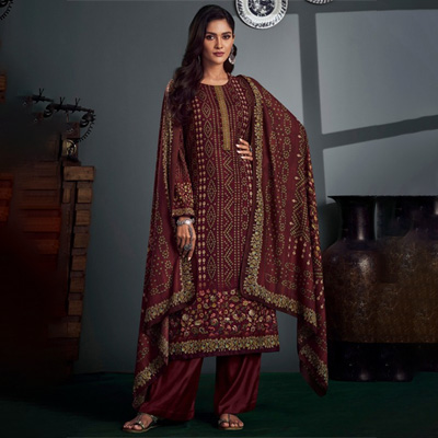 Maroon & Gold-Toned Printed Unstitched Dress Material