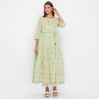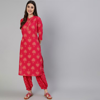 Women Pink Ethnic Motifs Printed Pure Cotton Kurti with Salwar