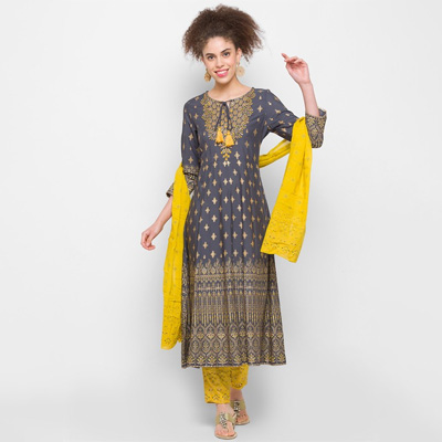 Women Grey Floral Embroidered Panelled Kurti with Salwar & With Dupatta