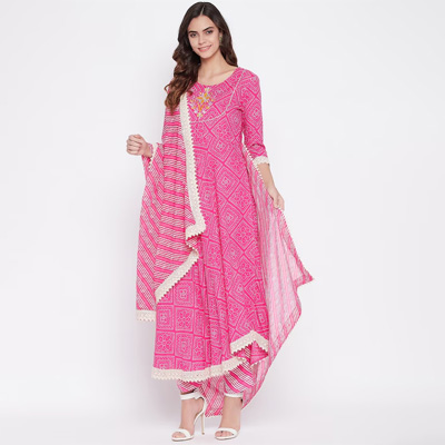 Women Pink Embroidered Empire Kurti with Salwar & With Dupatta