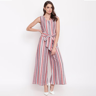 Women Multicoloured Striped Basic Jumpsuit