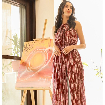 Maroon & White Printed Basic Jumpsuit