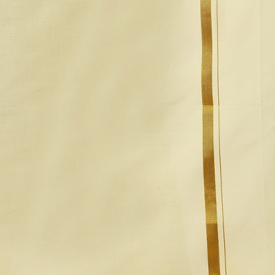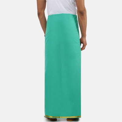 Men Pure Cotton Single layer Beige & Green Dhoti with gold jari border