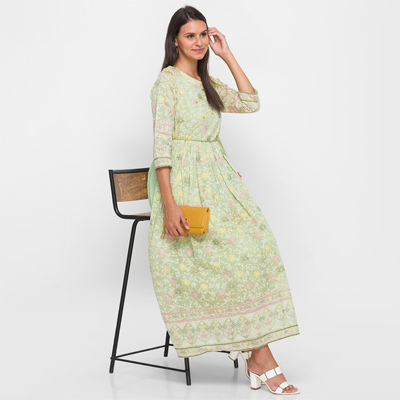 Kurti with Salwar Kurti design: Floral printed A-line shape Panelled style Keyhole neck, sleeveless roll-up sleeves Na pockets Calf length with flared hem Polyester machine weave fabric Salwar design: Embroidered Salwar Elasticated waistband Hook and eye closure Size & Fit The model (height 5'8) is wearing a size S Material & Care Cold Machine Wash, Wash & Iron Inside out, Do not Tumble Dry, Dry in Shade, Do not iron on print, Do not use Dryer, Wash Separetely