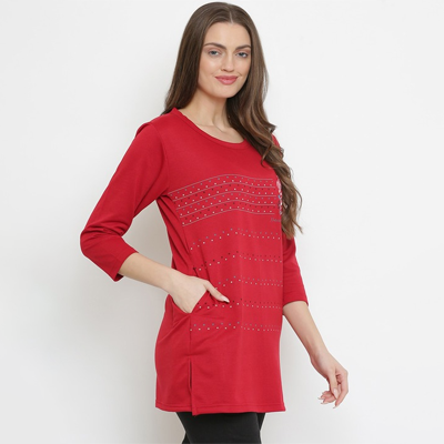 "Fabric : Cotton Neck : Round Neck Pattern : Solid Sleeve Length : Three-Quarter Sleeves Sustainable : Regular Type : Regular Wash Care : Machine Wash"